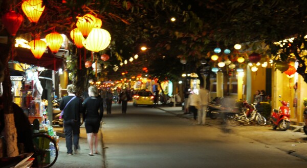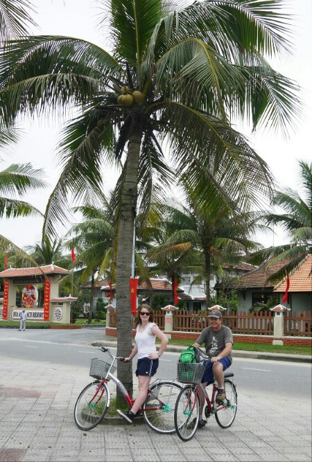 Well we spent lots of time wondering around and chilling out. The girls did a cooking class and enjoyed eating the fruits of their labour. They even got the recipes! Richard and Georgia decided to get some clothes made – after much pestering by the locals! Richard got a shirt and Georgia a sun dress. They both turned out okay, and for the price they were bargains. Georgia designed and also had some sandals made. All a bit of fun. We hired bikes and went to the beach one afternoon. It was good to leave town and see some of the countryside. The place has stalls everywhere you look. They try to sell you anything and everything! We could easily have spent more time in Hoi An.