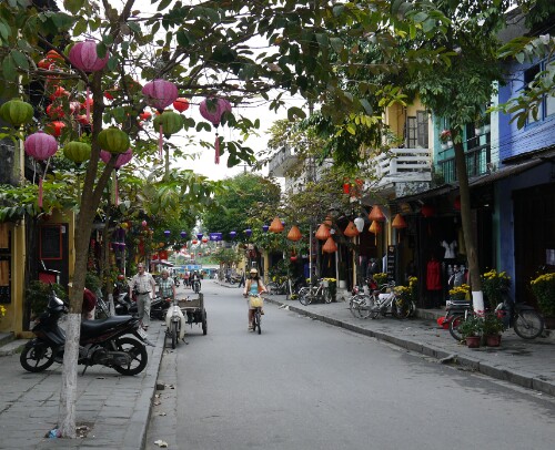 We arrived yesterday to the warmth of some sunshine. This is a lovely place and reminds us of Queenstown.There are lots of boutique type shops selling mainly made to measure clothes and shoes. It’s lovely at night when they turn on all the lanterns. There is a river running through the town and a nice relaxed feeling about the place. We had a 4 hour bus ride to get here – 150km they do things in their own way and time! We are hoping to do some more exploring by cycle and the girls might get to go to a cooking class .