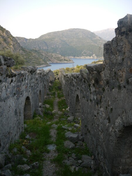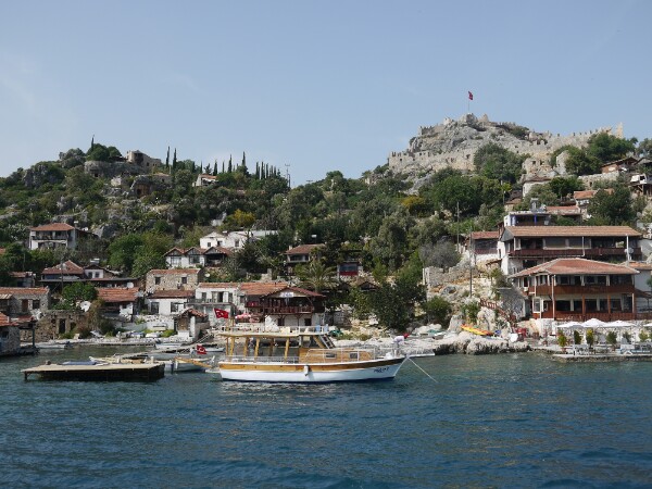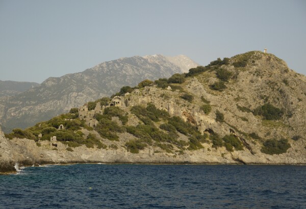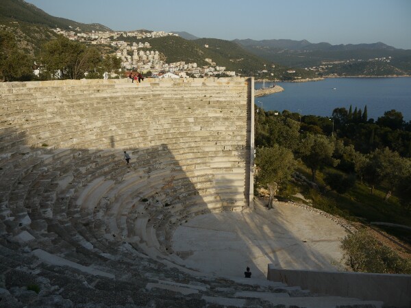The next day we hit the road (ocean??) early to catch up on what we missed the day before. We cruised past the Blue Lagoon and Oludeniz (the nicest beach in Europe?), before stopping and disembarking the boat to go for a wander up Butterfly Valley, where many types of butterflies flutter around in summer. Unfortunately, it wasn’t quite the right time for them so we only saw a couple of species. Georgia and Richard then went for a swim in the cool waters, while everyone else sunbathed. The boat trip that day was a long one from Butterfly Valley to Kas. While on the journey, a coastguard helicopter decided to fly overhead, which got everyone a bit nervous, but it didn’t stop – so all was well. Kas was a lovely, pleasant harbour town. We visited the customary ruins.