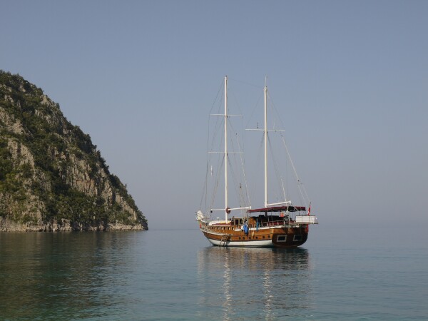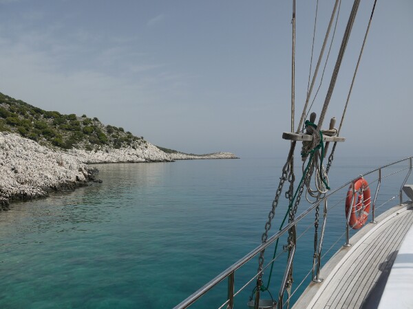 That night we pulled into a sheltered harbour. It was still light for a while, so everyone apart from Georgia and the Canadian Denny decided to take a walk on the mainland. While we were walking, we saw a coastguard boat but didn’t really think much of it. It was quite a story when we got back to the vessel!! The coastguard boat came up to our ship to check the stamps and whatnot. The message mustn’t have got through from Fethiye about them, so our captain got fined. Apparently they fibbed and said there were no tourists on board, as Georgia and Denny were below deck sleeping. If there were tourists, the fines would have been much heftier. Our captain has good contacts though, so he should get off them easily enough
