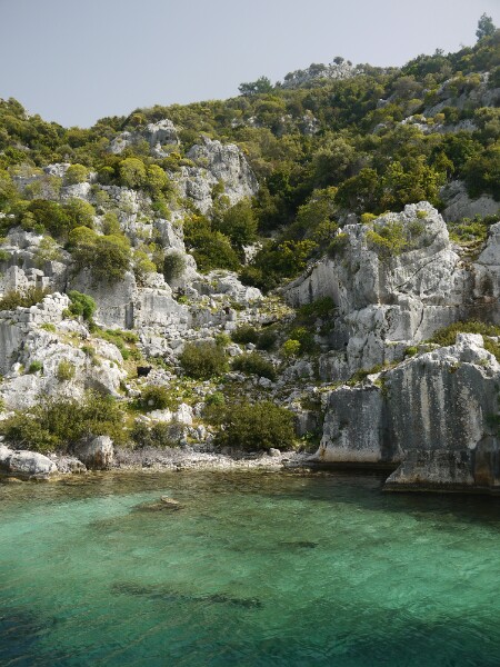 The next day, as we were cruising out of the harbour we came across a dolphin and what looked to be a ginormous, dead turtle!! Georgia thought it looked like something out of Finding Nemo. To our relief it woke up and swam away as we went past. That day we went to the sunken city of Kekova. This was once an ancient Lycian city but due to an earthquake half of it fell underwater. Now you can see some creepyish stairs just leading off the island into the sea below.