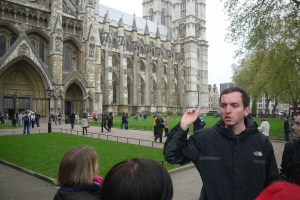 Joined a free walking tour around London on Thursday morning with our guide Andrew, we started from Wellingtons Arch next to Hyde Park then headed off to see the changing of the guard outside Buckingham Palace (unfortunately the Queen wasn’t home so no tea and scones), then off to Trafalgar Square, Westminster Abby, Big Ben and Parliament House and ending at a Pub for some Lunch – fish and chips and some mushy peas!