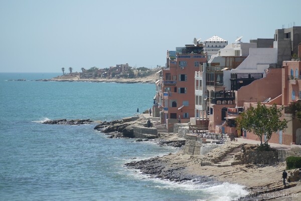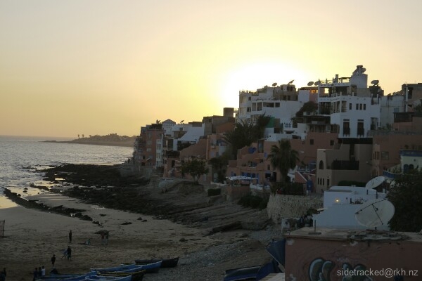After spending time in Agadir, we thought that we should make our way up the coast to Essaouira. However, there was a problem: the only bus left Agadir at 9:30am, and there was no way we would be organised enough to catch it. So, using our brains it was decided that we should take the local bus up to a place called Taghazout, then catch the bus from there at a later time the next day. So we caught this local bus, and made our way to the fishing-gone-surfing village of Taghazout, with our accommodation pre-organised (or so we thought). Turns out that where we had planned to stay was out of budget, AND, to dad’s horror, didn’t have wifi. So we began on the adventure of trying to find reasonable accommodation, with a reasonable price and reasonable wifi. Sound reasonably easy? Think again. All that we could find were apartments that are designed for week-long surfing trips, not one-night stopovers. Exhausted, we found a cute little cafe to have lunch (with an extremely rare english menu!!) and soon discovered that it was a hotel, and, much to my delight, also part of the premier surf school, Surf Maroc. Because it was cheap, we stayed there in two cute rooms overlooking Hash Point, and, because it was one of my goals for this trip, I enrolled in a surf lesson.