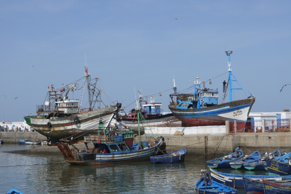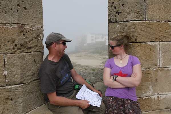 We took a grand taxi (a beat up big Mercedes that takes 6 passengers) from Taghazout to Essaouira. It was quite an experience – picking up and dropping off locals on the way. We occupied 3 of the 4 seats in the back. They are legally allowed to take 6 passengers and the driver. The journey took 2 hours and was quicker and cheaper than the bus. Another unique experience, but we made it in one piece. We were told Essaouira was a chill out place also, so we were looking forward to it. Turns out it had two faces – the medina and the beach.