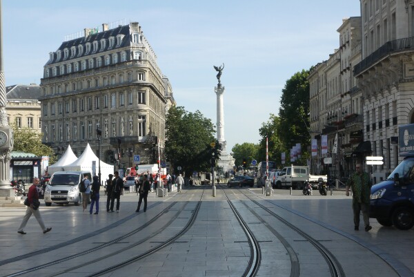 We took another train from Hendiye to Bordeaux – a 3 1/2 hour ride. The time went reasonable quickly on a very full train. Lots of young people were sitting on the floor in the aisles. Bordeaux turned out to be an interesting city. Once again it had huge amounts of history and lots of myths. Our hotel was just across from the railway station – a relief as we didn’t have to walk for miles with our packs. A loud cheer from the girls!!